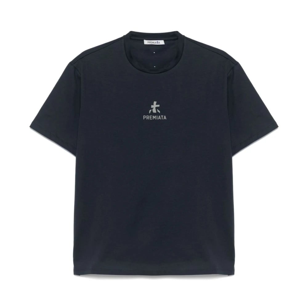 Premiata, Toppar , Herr, S, Blå Crew Neck Logo Print T-shirt