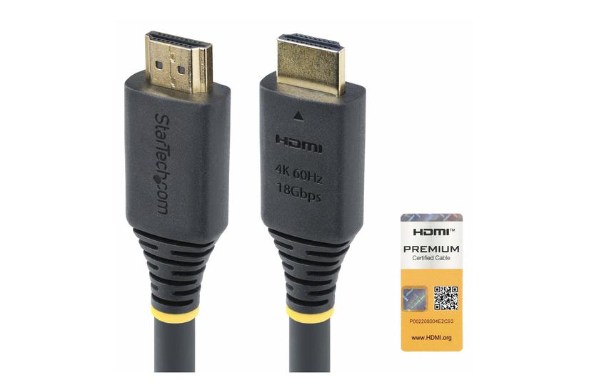 StarTech Premium Certified High Speed HDMI Cable 4K 60Hz/1440p 144Hz, HDR10/HDCP 2.2/ARC, 18Gbps, UHD HDMI 2.0 1,5m