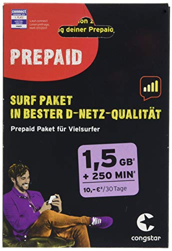 congstar Prepaid Surf Paket [SIM, Micro-SIM och Nano-SIM] – Det förbetalda paketet för multisurfare i bästa D-nätkvalitet.