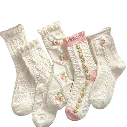 5 par blommiga strumpor centrum flicka spets volanger ankelstrumpor Gyaru stuga tillbehör Preppy Coquette kläder, Blommig, one size