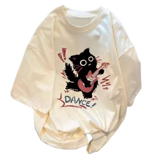 Kvinnor vintage t-shirt Y2K katt grafisk Harajuku t-shirt toppar sommar emo grunge överdimensionerade streetwear preppy gotiska kläder, BEIgE, XXL
