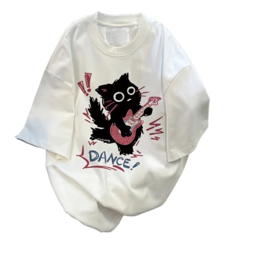Kvinnor vintage t-shirt Y2K katt grafisk Harajuku t-shirt toppar sommar emo grunge överdimensionerade streetwear preppy gotiska kläder, Vitt, 3XL