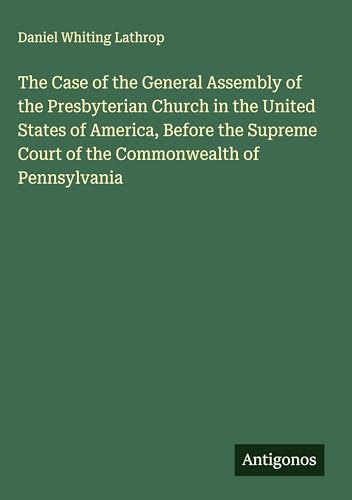 The Case of the General Assembly of the Presbyterian Church in the United States of America, Before the Supreme Court of the Commonwealth of Pennsylvania