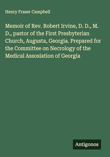 Memoir of Rev. Robert Irvine, D. D., M. D., pastor of the First Presbyterian Church, Augusta, Georgia. Prepared for the Committee on Necrology of the Medical Assosiation of Georgia