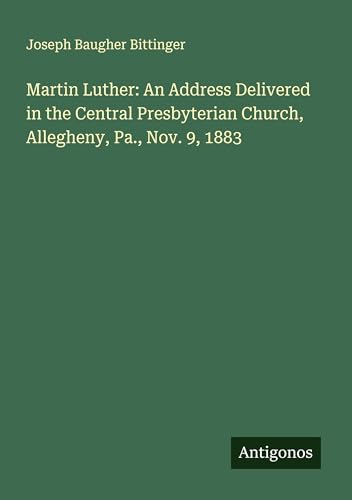 Martin Luther: An Address Delivered in the Central Presbyterian Church, Allegheny, Pa., Nov. 9, 1883