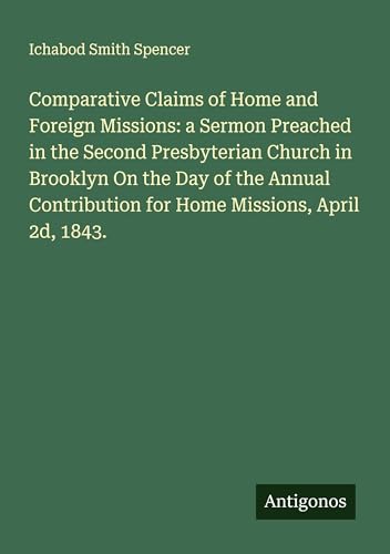 Comparative Claims of Home and Foreign Missions: a Sermon Preached in the Second Presbyterian Church in Brooklyn On the Day of the Annual Contribution for Home Missions, April 2d, 1843.