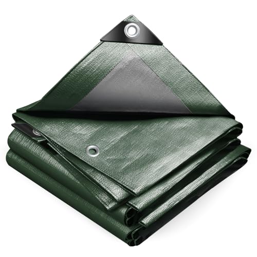 VOUNOT Skyddspresenning av polyeten 240 g/m², extremt tung och slitstark dubbelsidig belagd vattentät presenning med aluminiumöglor, poolpresenning, grön och silver, 4 x 8 m