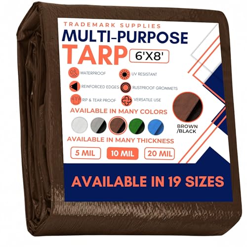 Presenningsskydd brun svart slitstarkt tjockt material, vattentätt, bra för presenning baldakintält, båt, husbil eller poolöverdrag! av varumärke tillbehör (6 x 8, kraftig)
