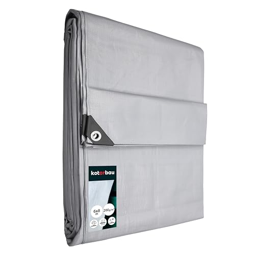 KOTARBAU® Presenning - Polyeten - 6x8 m - Silver - 200 g/m2 - Stark - Tjock - Vattentät Skyddspresenning - Presenning med Öljetter - Skyddspresenning för Möbler - UV-beständig - Täckplast