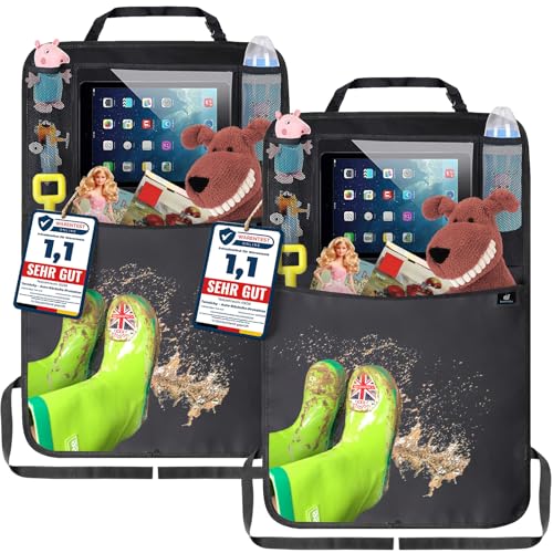 Termichy Ryggstödsskydd för bil, sparkskydd med baksätesarrangör, baksätesskydd, vattentät presenning sparkmatta skydd för bilstol med genomskinlig hållare, vattentät (2 stycken, svart)