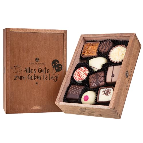 Elegance – födelsedag – praliner – tio handgjorda praliner i en trälåda – choklad – present – födelsedag
