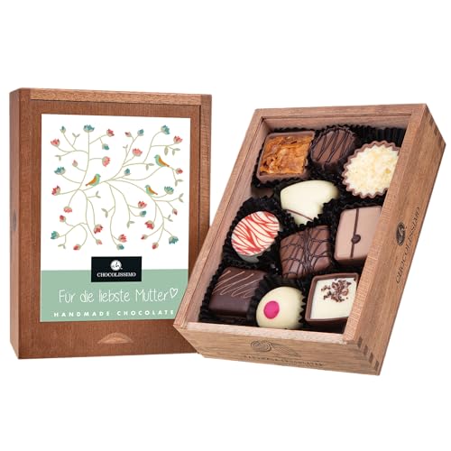 Elegance – mors dag – praliner – 10 ädla praliner | i en trälåda | För den älskade mamman | Presentidé | födelsedagspresent | choklad | mamma | present till mamma | mamma