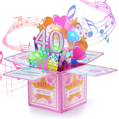 joyoldelf 40 år gammal kvinna födelsedagskort - 3D Pop Up musikaliskt gratulationskort, Grattis på födelsedagen present, perfekt för mamma, vän, mamma, syster, flickvän, följeslagare, familjefest