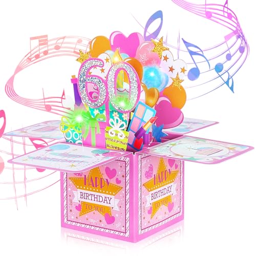 joyoldelf 60 år gammal kvinna födelsedagskort - 3D Pop Up Musical gratulationskort, Grattis på födelsedagen present, perfekt för mamma, vän, mamma, syster, flickvän, följeslagare, familjefest
