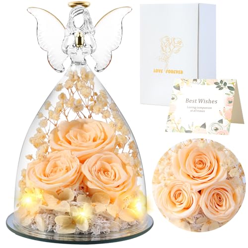 Touloube Evig ros ängel present till mamma, evig ros i ängel glaskoppel för dig, Infinity rosor bevarade blommor handgjorda, änglafigur av glas, gåva för kvinnor mor mormor mormor mormor