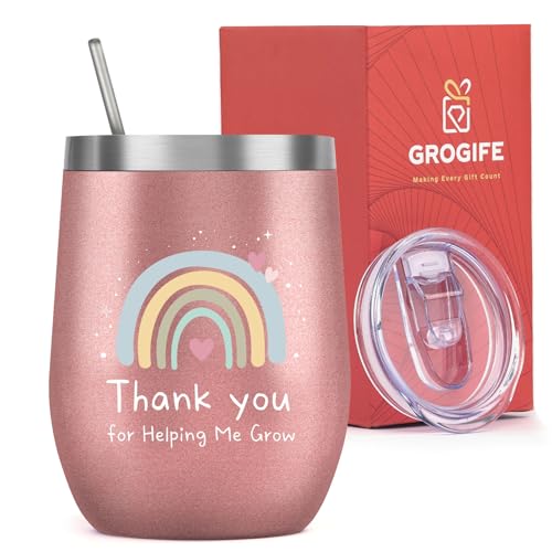 Presenter för lärare till barnkammare – Tack för att du hjälper mig att växa present, bästa tackgåvor för lärare kvinnor, avskedsgåvor, kaffekopp och resemugg 350 ml