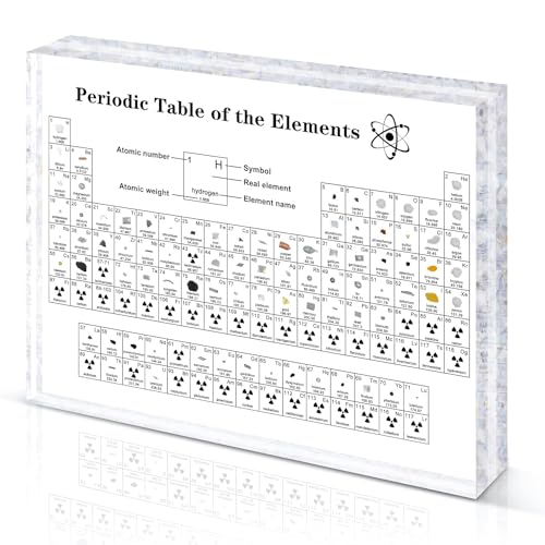 Sparklenut Periodiska systemet med riktiga grundämnen inuti. Periodisk tabell i akryl med 83 grundämnen. Prover för periodiska systemet, fin present till elever/lärare/barn/studenter eller andra (A)
