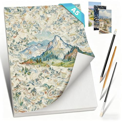 Romon akvarellpapper, akvarellblock målningspapper akvarell papper vattenfärger ritpapper gouache papper gör-det-själv present vykort för studenter lärare konstnärer, 50 ark akvarell papper 300 g