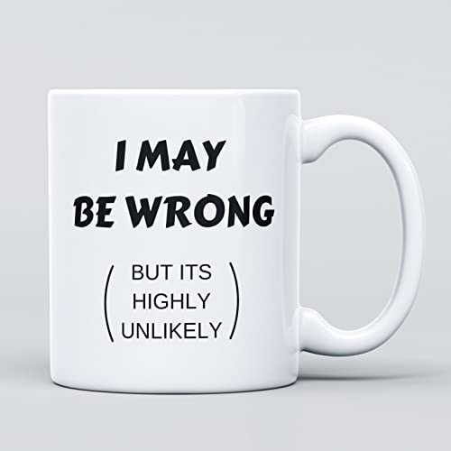 'I May Be Wrong' skämt stor slitstark keramisk nyhet rolig kaffemugg, kopp för män och kvinnor, flickor och pojkar – present till födelsedag, avsked, lärare, jul, grattis