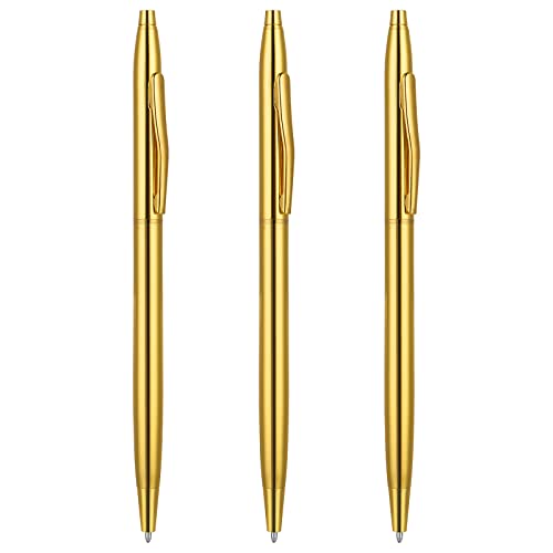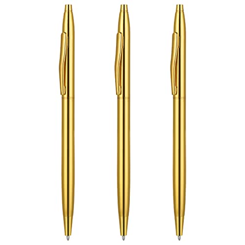 TIESOME Kulspetspennor, 3-pack smala metalliska infällbara pennor i rostfritt stål, svart bläck 1 mm, fin present till företag, kontor, studenter, lärare, bröllop, jul (guld)
