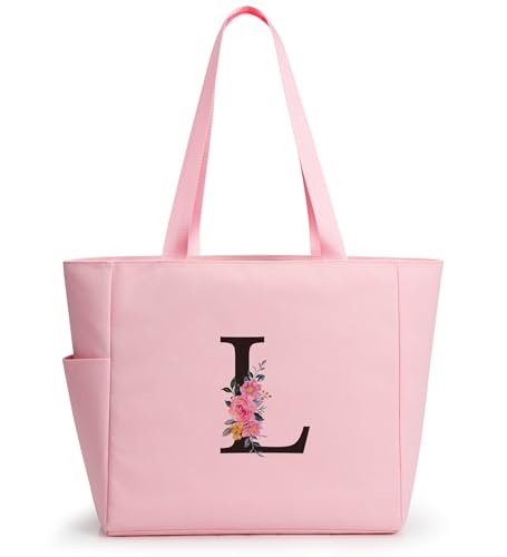 KALIDI Personlig tygväska med dragkedja, A-Z initial alfabet monogram stor tygväska present till kvinnor brudtärna mamma lärare vän bröllop daglig shopping, Rosa-l, Large
