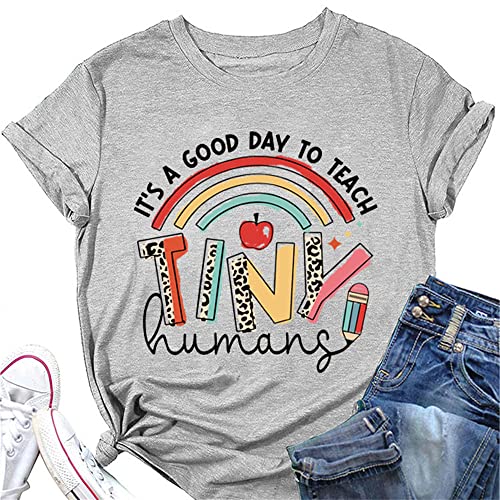 It's A Good Day to Teach Tiny Humans T-shirt kvinnor sommar söt regnbåge äpple penntryck t-tröjor lärare dag present toppar, Grå, L