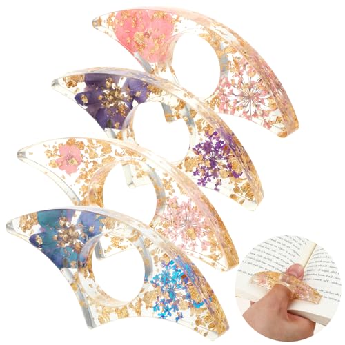 Dimeho 4 st boksidhållare torkad blomma harts tumbok sidhållare för läsare handgjord blommig bokmärkesring boköppnare lästillbehör present till bokälskare lärare