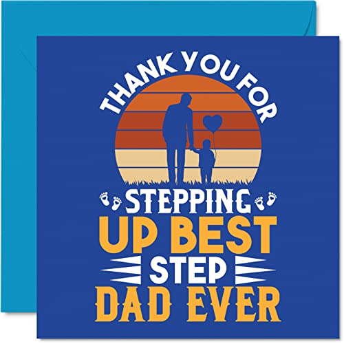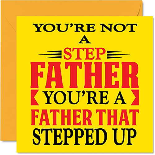 Hjärtliga farsdagskort för styvpappa – kliva upp – sött grattis på födelsedagskort för styvpappa från dotter son, fars födelsedagspresent, 145 mm x 145 mm fars dag gratulationskort present till pappa