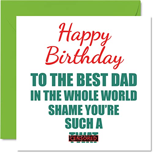 Roligt födelsedagskort till pappa – Best Dad Tw*t – skämt fars dagskort till pappa från son dotter, skämt far födelsedagspresenter, 145 mm x 145 mm oförskämd födelsedag gratulationskort present till pappa pappa