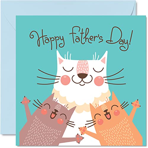 Roliga farsdagskort till pappa från katten – kattfars dag – skämt grattis på fars dag kort till pappa från katten, pappa presenter, 145 mm x 145 mm fars dag gratulationskort present till pappa pappa