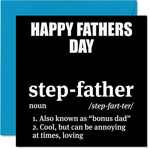 Roliga fars dagskort för styvpappa – fantastisk styvpappa – skämt glad styvfar farsdagskort till pappa, styvfar födelsedagspresenter, 145 mm x 145 mm fars dag gratulationskort present till styvpappa pappa