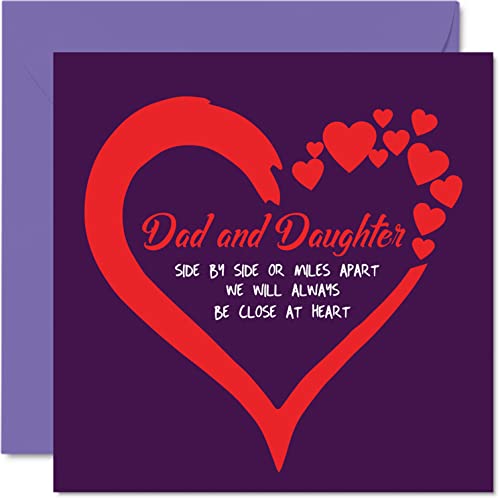 Hjärtligt farsdagskort för pappa – sida vid sida – vackert grattis på födelsedagskort för pappa från dotter, farsdagspresent, 145 mm x 145 mm fars dag gratulationskort present till pappa