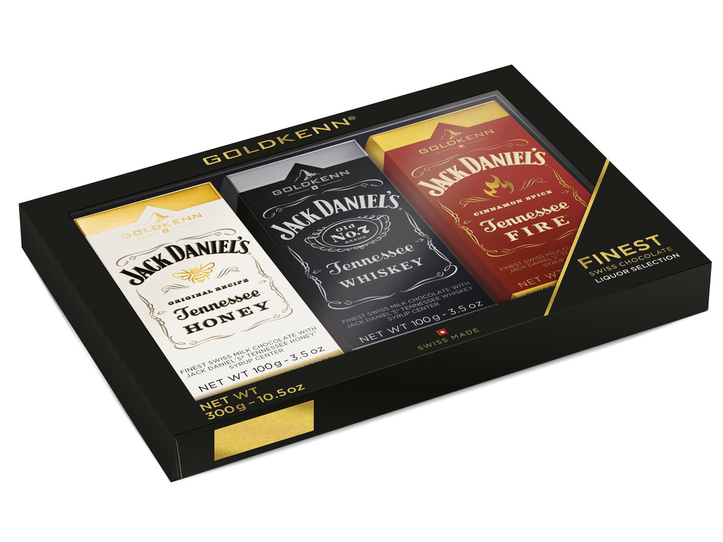 Goldkenn Jack Daniel’s Presentask, 3 x whiskeyfylld ljus 37% choklad