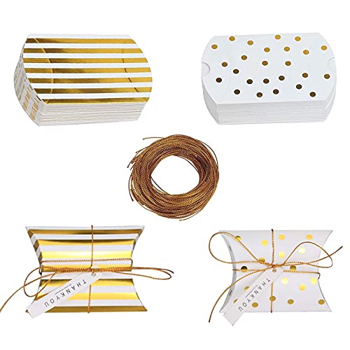 CTForest 50 stycken små presentlådor, chokladaskar i papper, kuddar små presentask, för att linda in choklad och små kakor är det det bästa valet för presenter (ränder, prickar)
