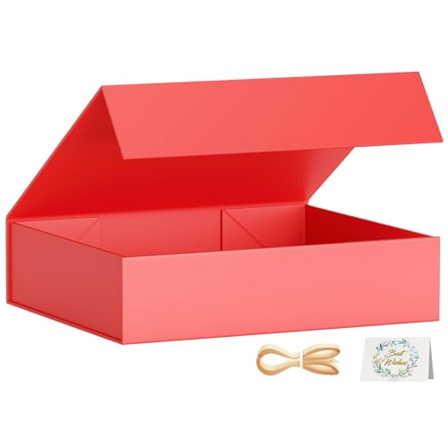 1-pack presentaskar, 30 x 20 x 7,6 cm presentlådor för presenter med lock, magnetisk stängning, rektangel, hopfällbar för brudgumskens förslagslåda, bröllop, jul, halloween, födelsedagspresent (röd)
