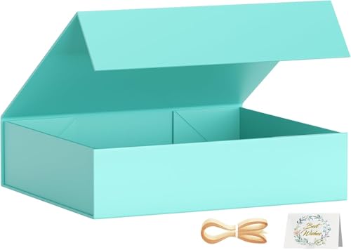1-pack presentaskar, 30 x 20 x 7,6 cm, presentlådor för gåvor, med lock, magnetisk stängning, rektangulär, hopfällbar, frierilåda för brudgummar, bröllop, jul, halloween, födelsedagspresent (turkos)