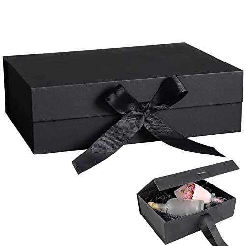 Presentask med rosett, 23 x 17 x 7 cm magnetisk presentkartong med lock, dekorativ låda, vikbar presentförpackning, presentförpackning, för årsdagar, banketter, födelsedagskalas, jul (svart)