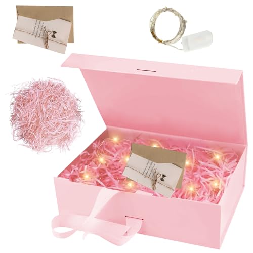 LED magnetisk presentlåda, (21 x 17 x 7 cm), papperslåda med band, magnetiskt papper med tejp, rektangulär låda, presentförpackning med lock, Bowknot presentförpackning med band och kort