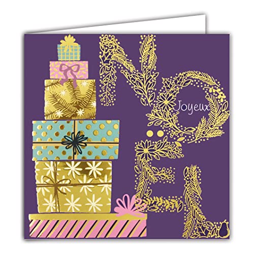 Afie 23033 fyrkantigt kort god jul guld glittrande pyramid presentförpackningar presentförpackningar krona växt gran fest fest - med vitt kuvert