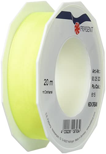 C.E. Pattberg NEON DREAM band med trådkant yellow (gul), 20 m slipband för färgglada presenttillfällen, 25 mm bredd, för små presentförpackningar, dekorationer & applikationer
