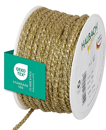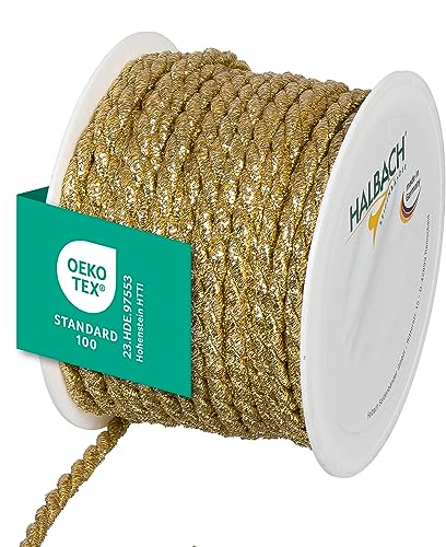 Halbach sidenband premiumsnöre guld | bredd: 6 mm längd: 25 m | snöre för dekorationer | guldsnöre för gör-det-själv-hantverk och presentförpackningar, färg: guld