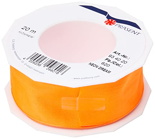 PRESÄSENT C.E. Pattberg NEON Dream band med trådkant tangerin (orange), 20 m band för färgglada, 40 mm brett, för ljusa presentförpackningar, dekorationer och applikationer