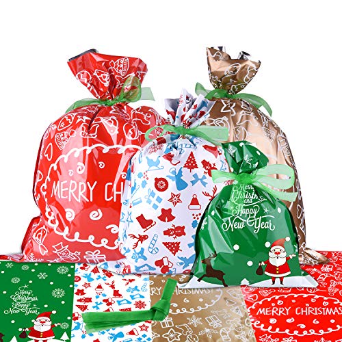 MIAHART Förpackning med 10 julpresentpåsar stora presentförpackningar blandade stilar julpresentpåsar med band för julklappar (stil A-10 st)