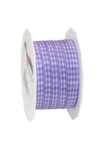 PRESENT VICHY presentband lavender/vit, 20 m dekorband för dekorering och hantverk, 10 mm bredd, rutigt band för färgglada dekorationer & presentförpackningar, för festliga tillfällen