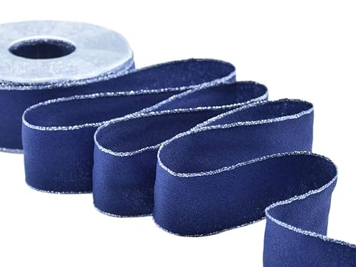 Furlanis - Sable Gränser Lurex med koppar, Italienska band för juldekoration, Presentförpackningar - Mörkblå, 40 mm x 25 m