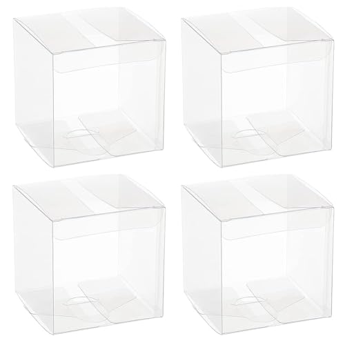 BENECREAT 20 st klara festfavörslådor 8 x 8 x 8 cm fyrkantiga PET-presentförpackningar med skyddsfilm för bröllopsminne