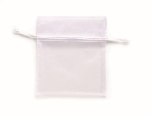 VILSTO Organza Påsar i Vit och Guldfärg, Smyckespåsar, Lavendelfickor, Små Presentpåsar för Sötsaker Bröllop Födelsedagar Jul Favoritväskor, Presentförpackningar, 7x9 cm, 50 Stycken