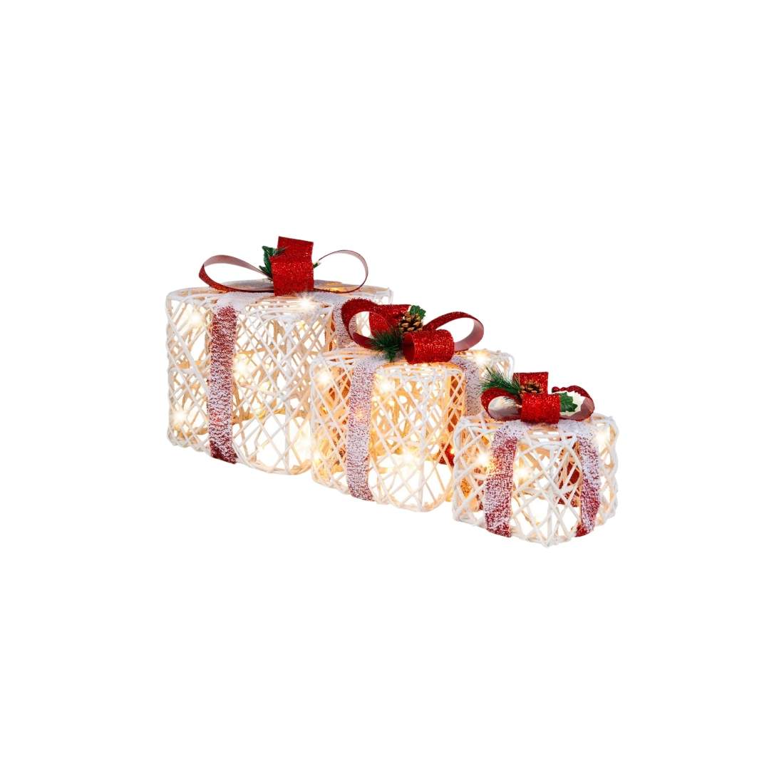 Julklappsförpackningar Set med 3 upplysta presentförpackningar med bågar LED-lampor 6H Timer