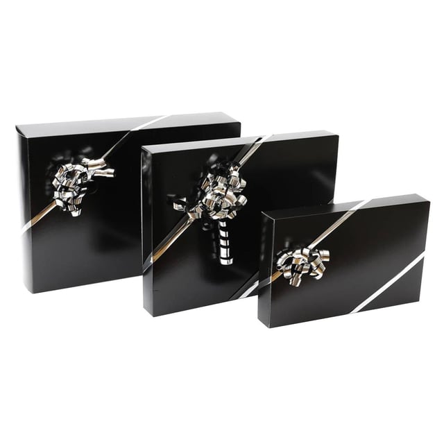 Svart presentask 33 x 26 x 11 cm, presentkartong med magnetiskt lock och rosett för bröllop, jul, födelsedagar, årsdagar presentförpackning