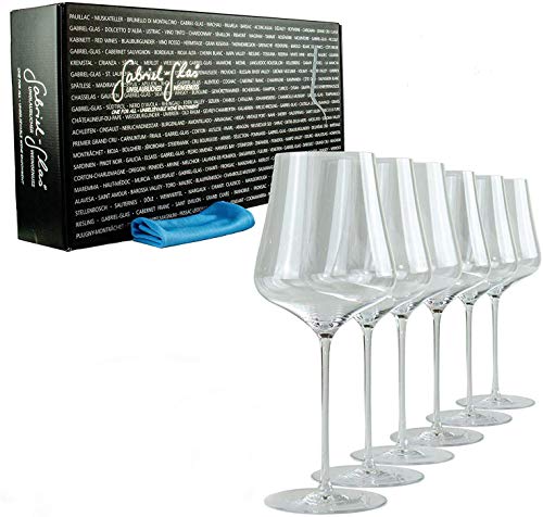 Palatina Verkstad® Gabriel Glas Gold Edition i 6 presentkartong munblåst vinglas, endast 90 gram lätt, diskmaskinssäker + speciell glaspoleringsduk